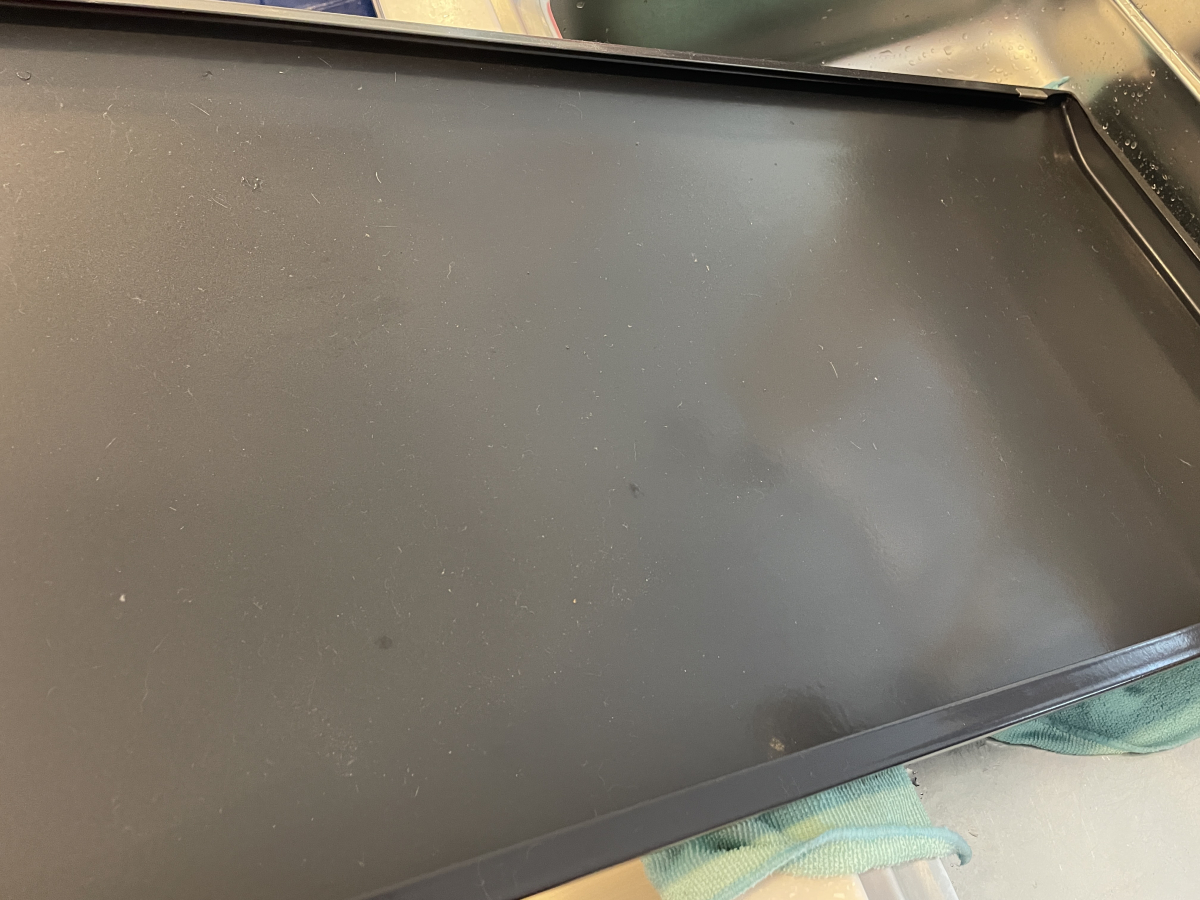 ぱっと見はあまり汚れていないかな、と思っても写真のように油をしっかり落とすと艶が違ったり