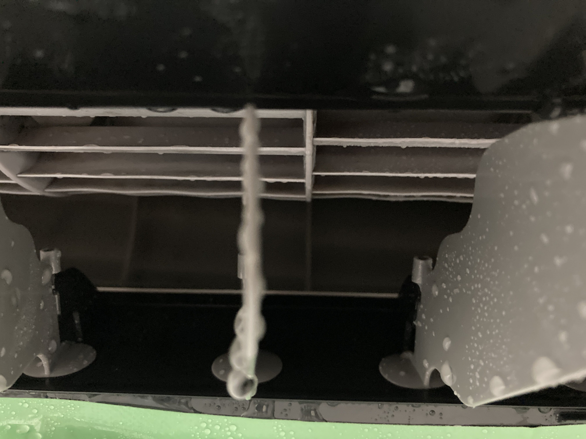 特にこの白くまくんの送風ファンの色がグレーでカビの染み付いた汚れが高圧洗浄だけでは取れずとっても目立つので