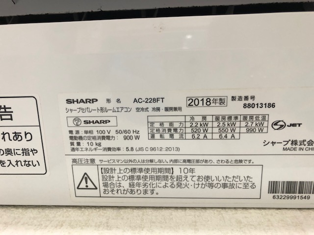 おそうじ革命 横浜鶴見中央店(川崎市、大田区) AC228FTシャープ一般エアコン清掃