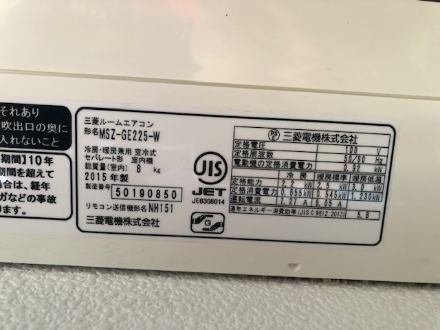 おそうじ革命 横浜鶴見中央店(川崎市、大田区) MSZ-GE225三菱霧ヶ峰一般エアコン清掃
