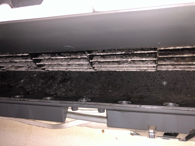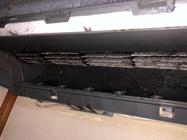 中もこんな感じです。ここまでカビがはりついてしまうと、通風口からカビを吐き出していてもおかしくない感じです。