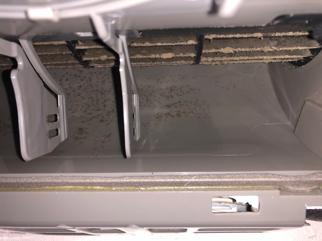 そんなダイキンさんでもどんなにすばらしいダイキンさんでも中は絶対に汚れます!このようにカビだらけです(~_~;)