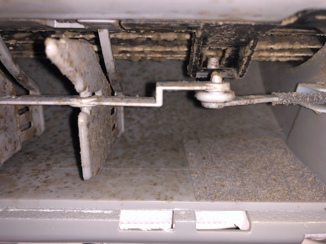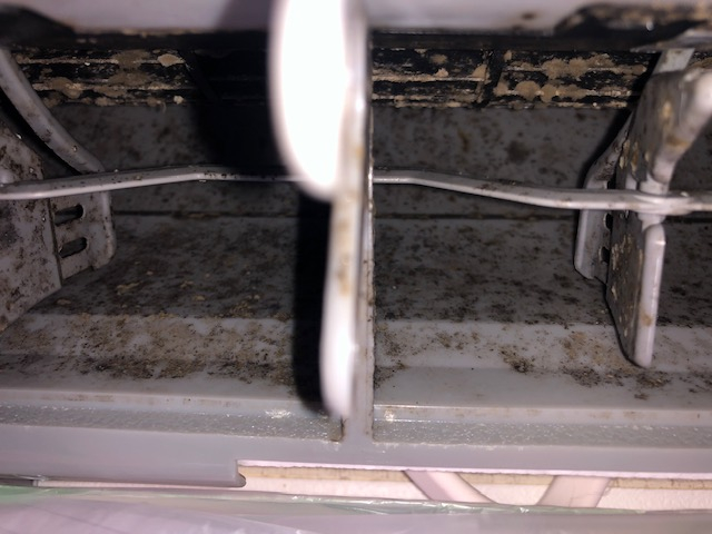 おそうじ機能が付いている高性能なエアコンでもこんなに中は汚れてしまいます(-"-;A ...アセアセ